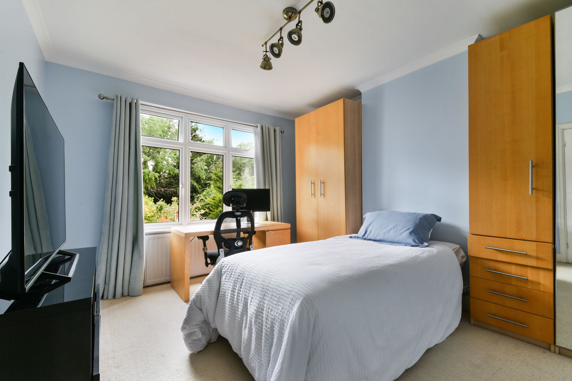 The large west-facing garden offers a private sanctuary, with woodland views creating a picturesque backdrop. For added convenience, the property includes driveway parking, a single garage, and the allure of the outdoors just steps away.