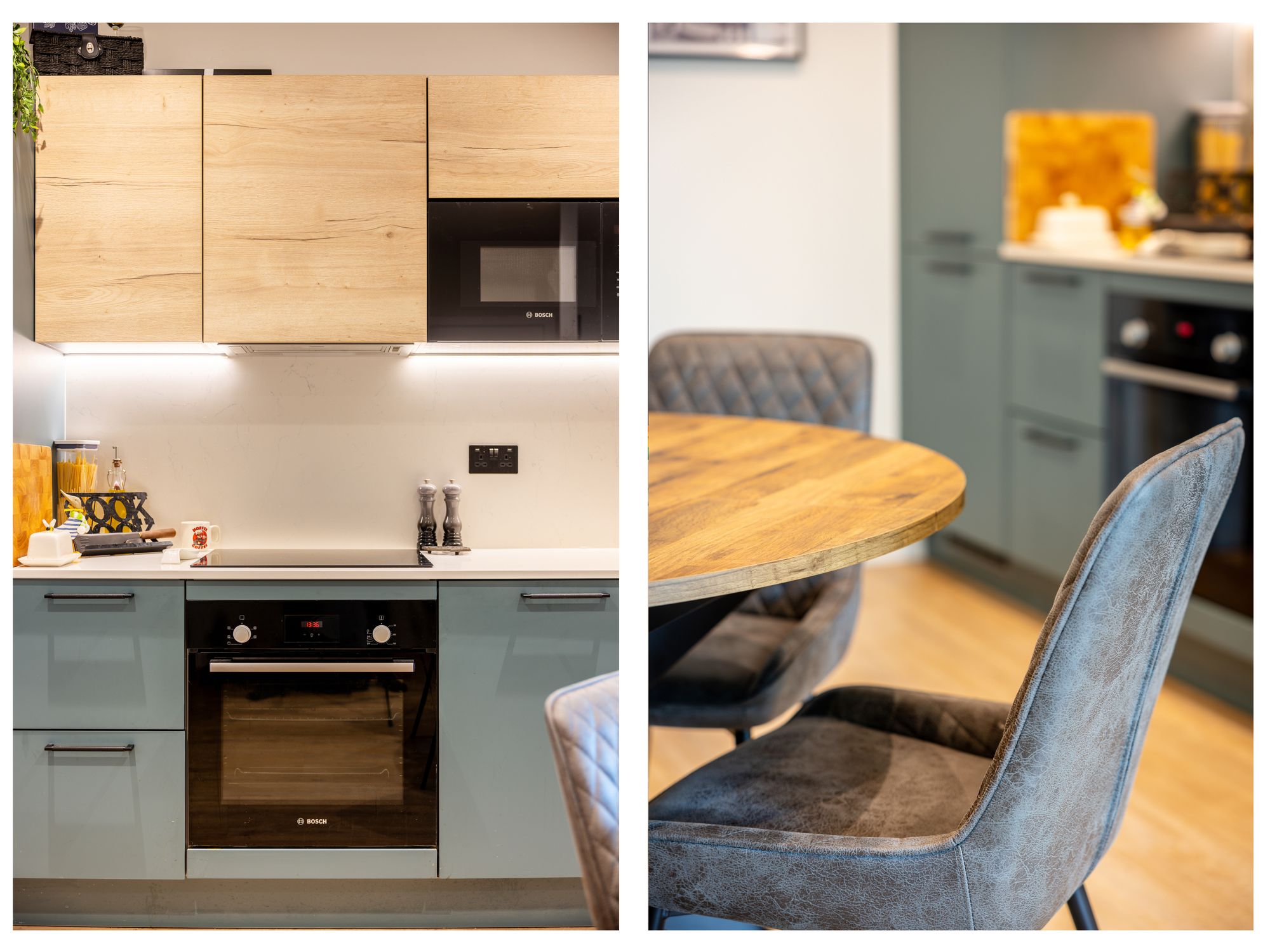 The apartment also benefits from a welcoming entrance area with space for coats and shoes, along with a large storage cupboard for added practicality. The generous double bedroom includes built-in wardrobes, while the sleek, modern family bathroom is finished to a high standard.