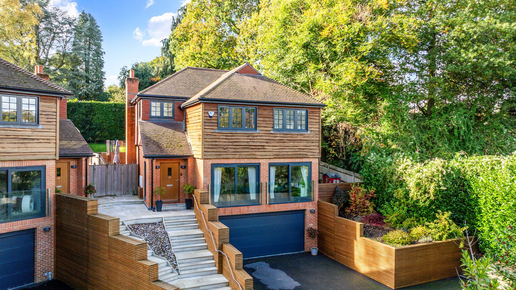 Guide Price £1,100,000 – £1,150,000. Nestled within an exclusive gated development of only three detached homes, this impressive four-bedroom family residence offers luxurious modern living in the desirable village of Chaldon, Caterham. Completed in 2018 to a high specification, this property combines elegant design with practical family features across three spacious floors.
