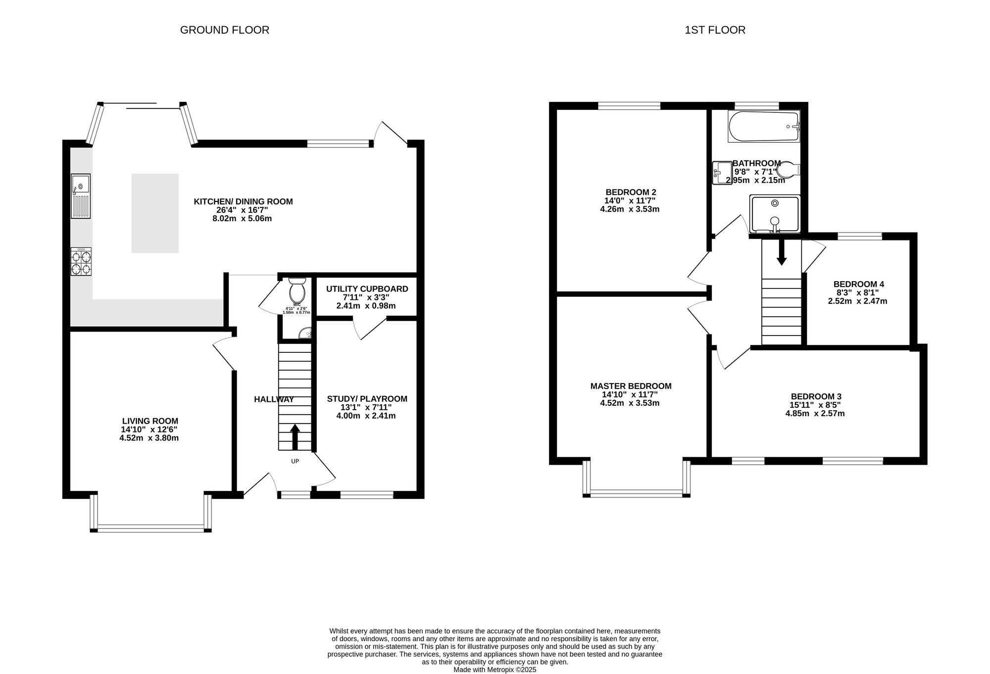 A convenient downstairs W.C, a versatile study/snug/playroom and discreet utility cupboard complete the ground floor.
