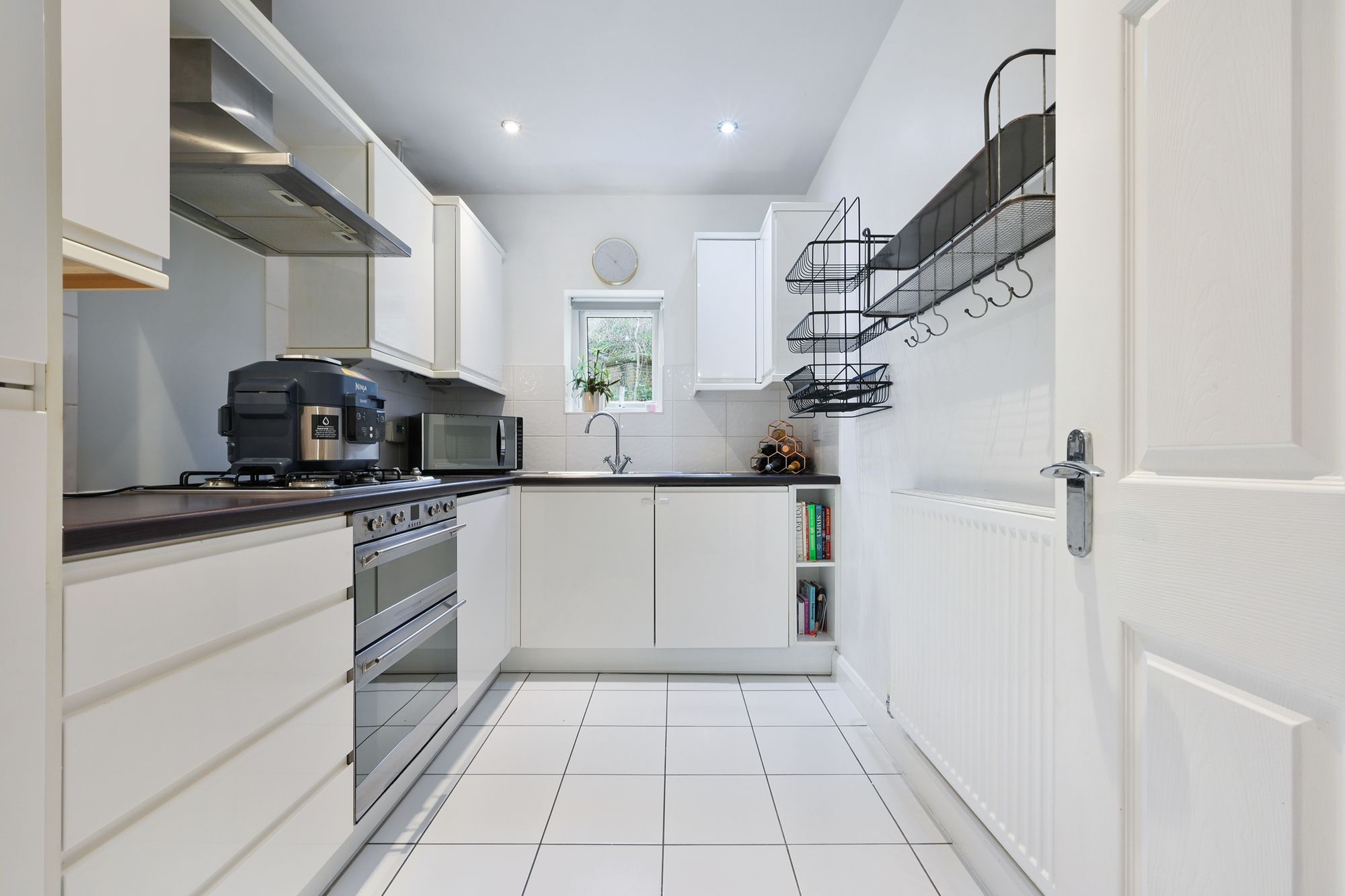 A separate kitchen offers practical cooking space with room for appliances and storage.