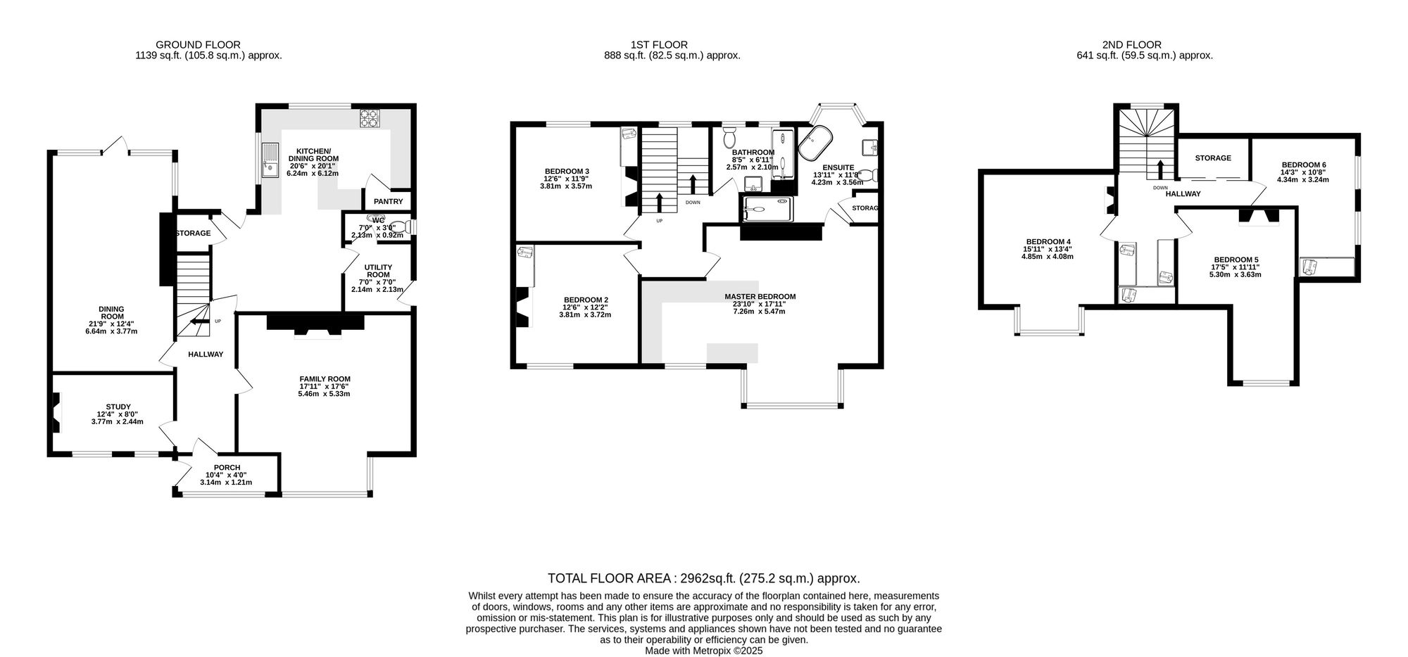Upstairs, there are six double bedrooms with the master bedroom in particular benefitting from an en-suite shower room and dressing area. There is also a separate family shower room to service the remaining bedrooms. The bedrooms are sizeable and well-proportioned; ideal for a large or growing family.