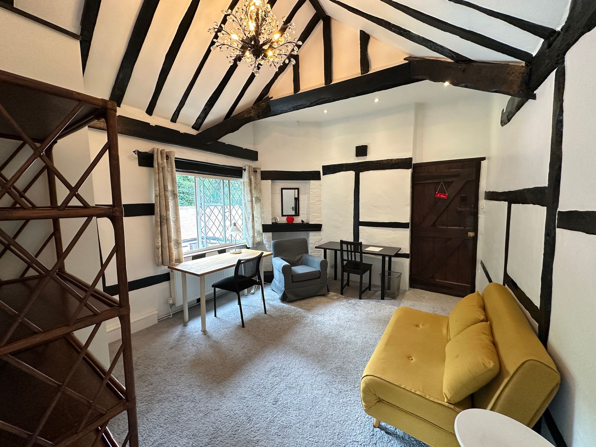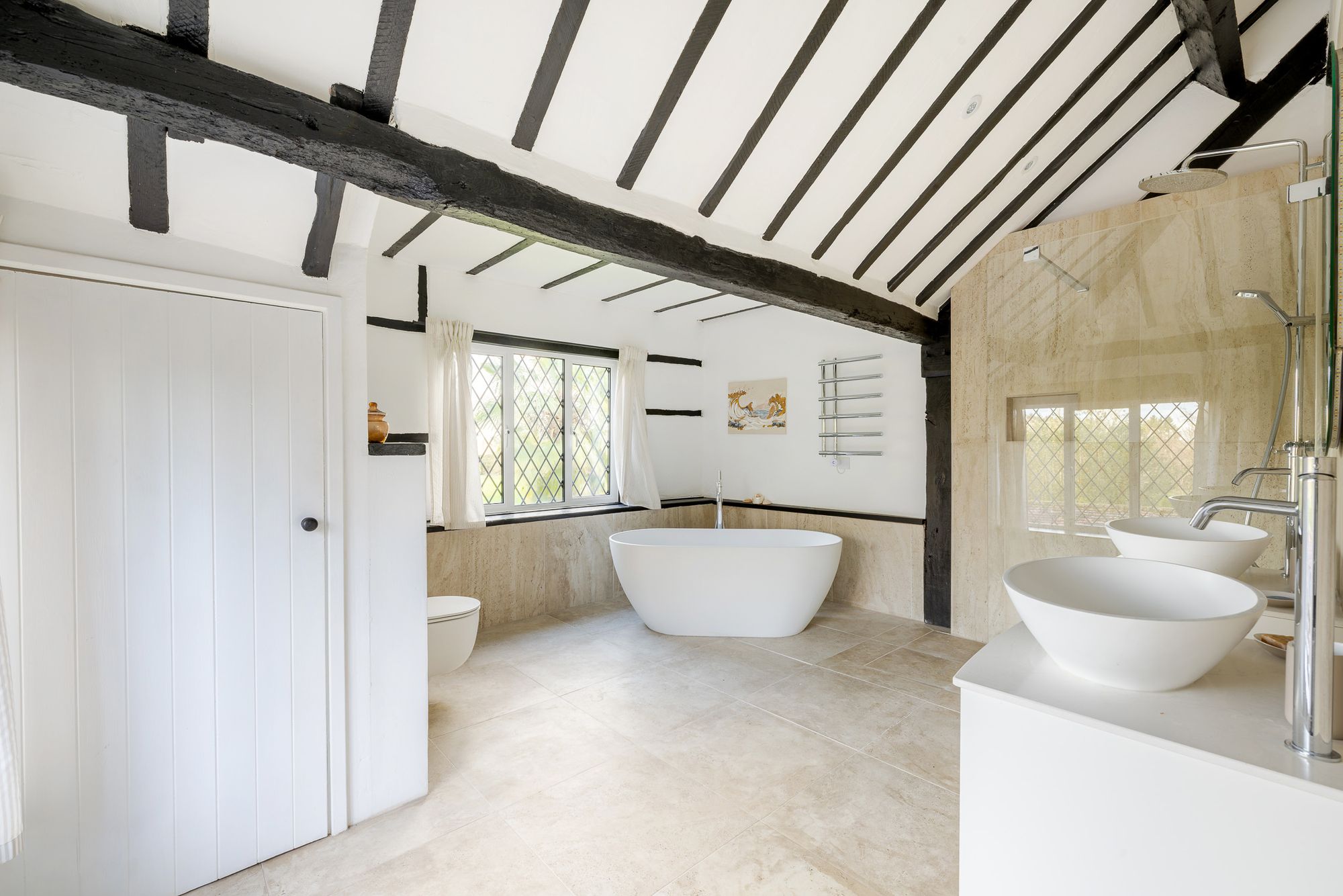 Internally, the residence is characterised by its timeless architectural features, including exposed beams, ornate fireplaces, and lofty ceilings, which together create a distinguished and elegant atmosphere. The spacious living room, with its striking inglenook fireplace, provides an ideal setting for both formal receptions and more intimate gatherings. A dedicated reading room offers a peaceful environment for quiet reflection, while the expansive kitchen/diner is designed for both everyday living and more elaborate entertaining. The second guest kitchen further enhances the property’s suitability for hosting large formal gatherings or extended family.