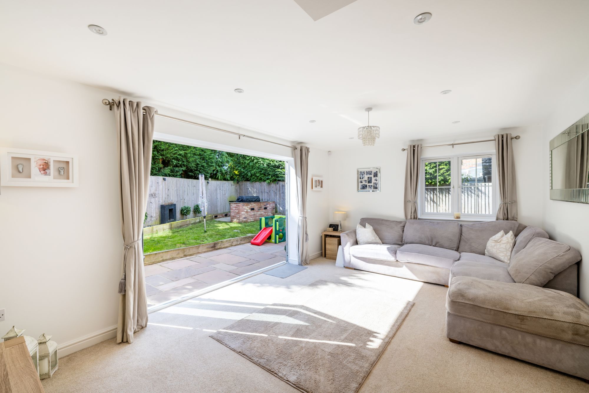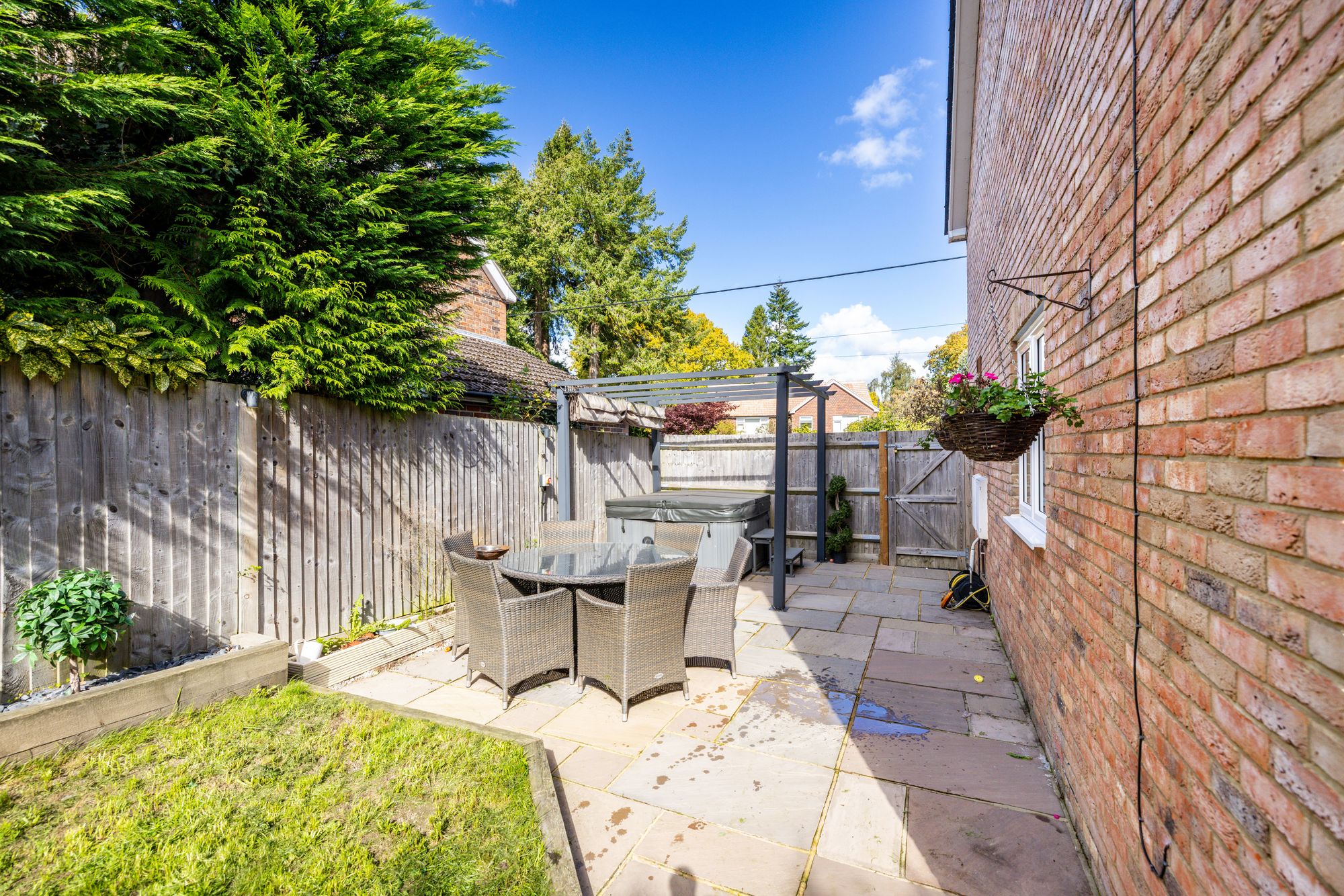 A real stand out for the property is the large garden which is private, spacious and wraps around to the side, offering space for table and chairs to entertain or relax, space for children’s slides or trampolines, along with a brick built bbq area.