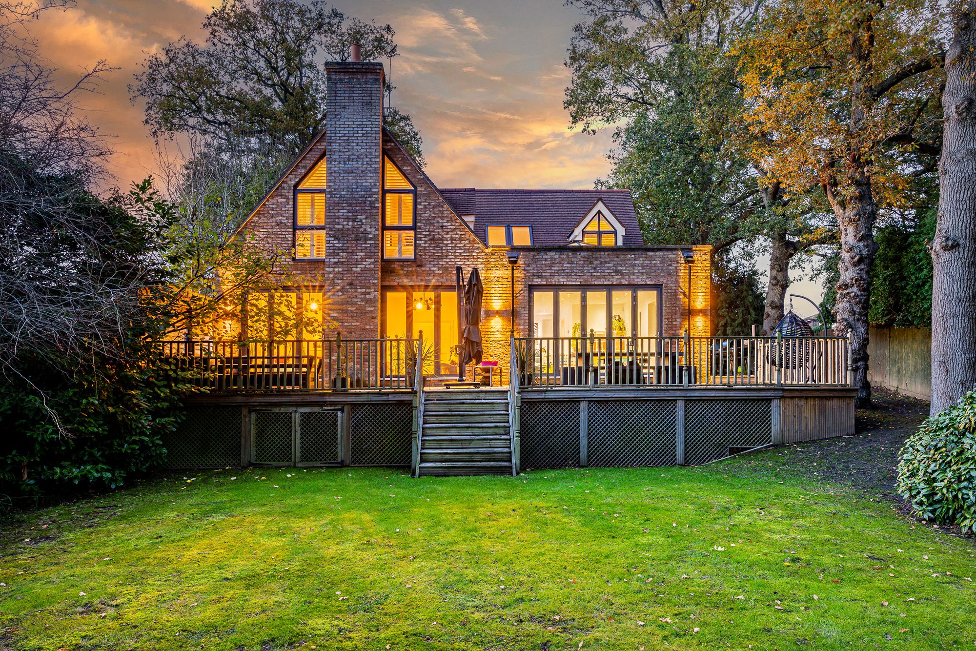 Gated four-bedroom detached mock Tudor home on a 0.67-acre plot featuring an orangery, cozy fireplace, open-plan kitchen/family ro...
