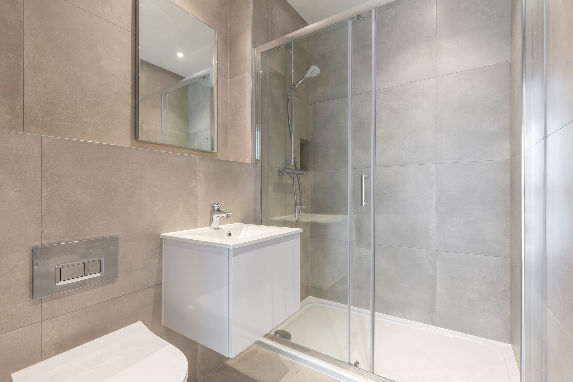 Located on the top floor of the building, the stylish home comprises of a lovely open plan kitchen/dining/living room immersed in light via the double windows and door which look out on to the private balcony. The neutrally decorated living space offers the perfect backdrop for the contemporary kitchen. Designed in soho matte carbon by Benchmarx, with soft closing handless units, complemented by fizzy crystal laminate worktops. Fitted with a range of integrated, Bosch appliances for added convenience to include a glass chimney hood, single oven, ceramic hob, fridge/freezer, and a washer/dryer. The sophisticated bathroom suite comprises of stylish Vitra and Vado sanitary ware, finished with grey wall and floor tiles. A single ended bath with a glass shower screen and attachments. A bespoke one drawer unit and basin offer you storage space, together with a mirror above. The heated towel rail is perfect for drying your wet towels on, and the wall hung compact WC with a flush plate finishes the streamlined look, all in chrome. Finally, a spacious double bedroom with access to the balcony.