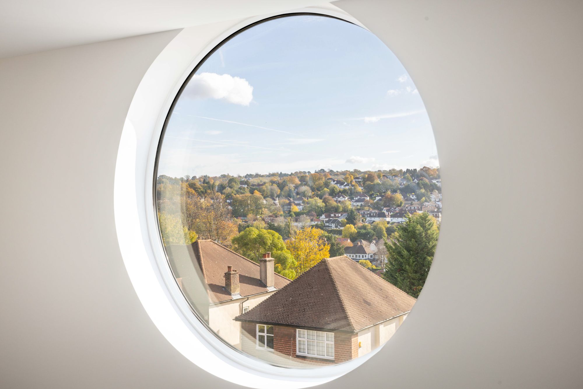 A bespoke architectural highlight of the home is the presence of two stunning large circular windows, thoughtfully positioned in the living space and the second bedroom. These striking feature windows add a unique character and an abundance of natural light, enhancing the penthouse’s sophisticated ambiance.