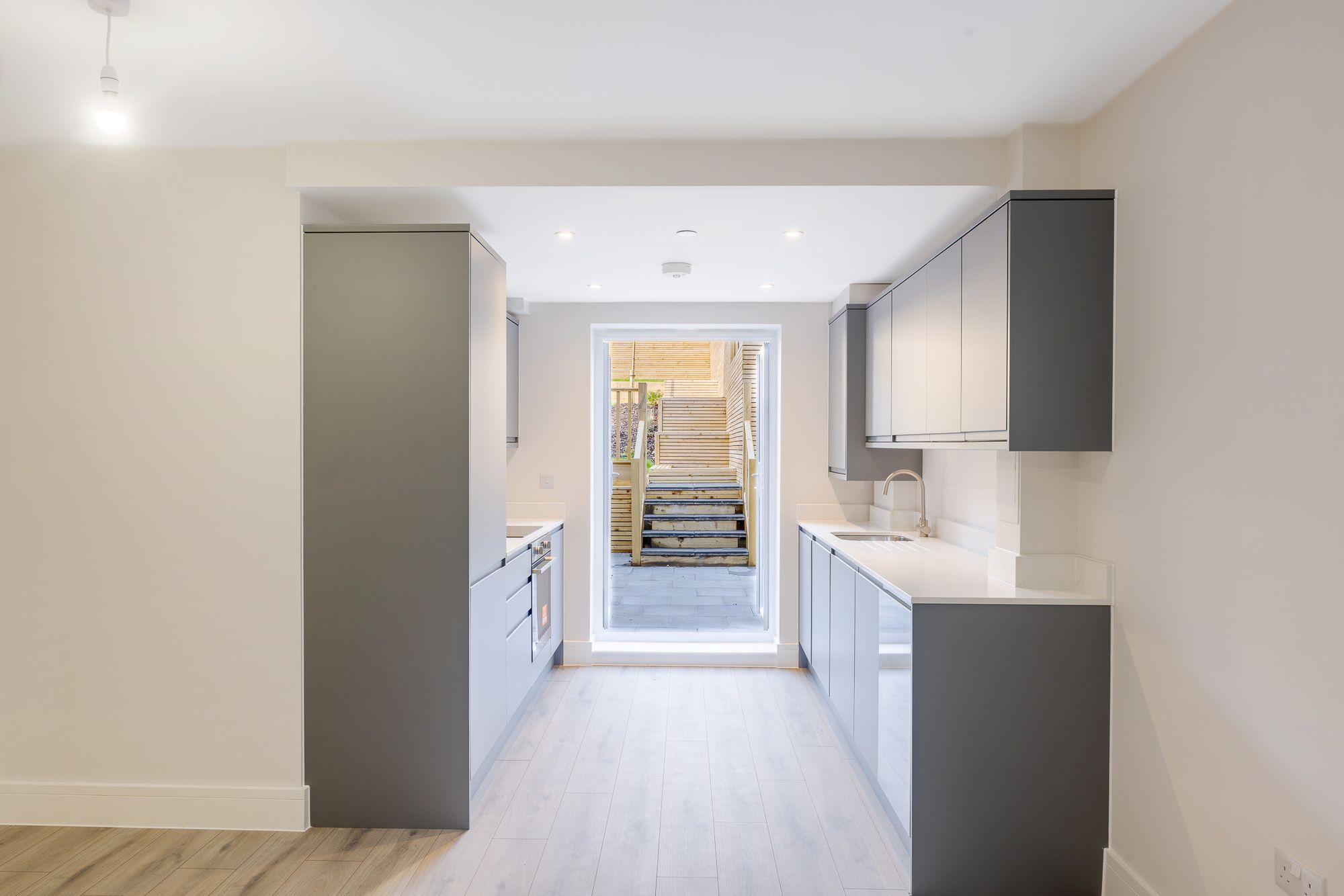 Step inside to a spacious, light-filled living area that flows seamlessly into a sleek, contemporary kitchen. Complete with quartz worktops, elegant cabinetry, and durable porcelain tiled flooring, the kitchen is as functional as it is stylish—perfect for both relaxed dining and entertaining.