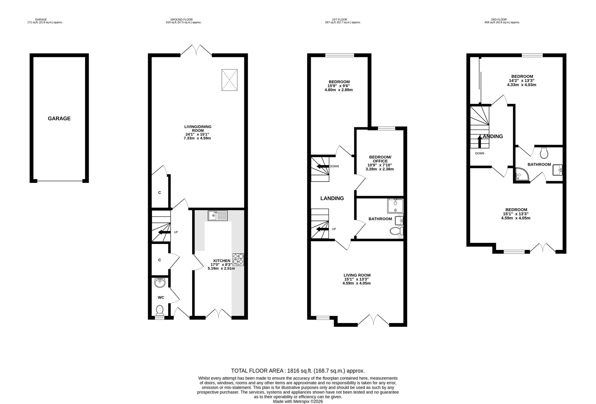The first floor provides flexible living accommodation, featuring a comfortable reception room which could be used as a family lounge or additional bedroom. This level also includes a generous double bedroom, a further bedroom ideal as a home office or nursery, and a modern family bathroom.