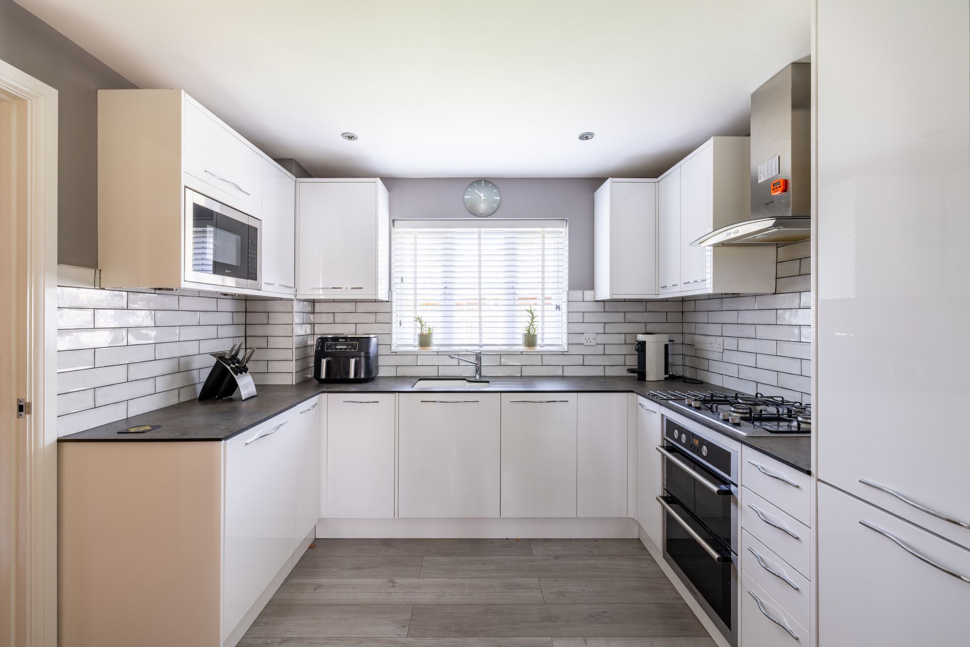 Nestled in a serene and exclusive cul-de-sac consisting of 6 homes, this well-presented modern detached house offers a harmonious blend of contemporary living spaces and convenient position. Boasting a wealth of desirable features and well-maintained interior, this residence is perfectly suited for discerning buyers seeking comfort and style. Upon entering, you are welcomed into a wide and bright entrance hall with various storage cupboards. The home’s three reception rooms provide ample space for family gatherings, dining and handy space to work from home. The hub of the home is the spacious kitchen complete with modern appliances, abundant storage, and a separate utility room for added convenience. Ascending the staircase, one is greeted by four generously-proportioned bedrooms, 3 of which each offer built-in storage. The primary bedroom benefits from an en-suite shower room, while the remaining bedrooms are serviced by a well-appointed family bathroom, ensuring privacy and functionality for all members of the household.