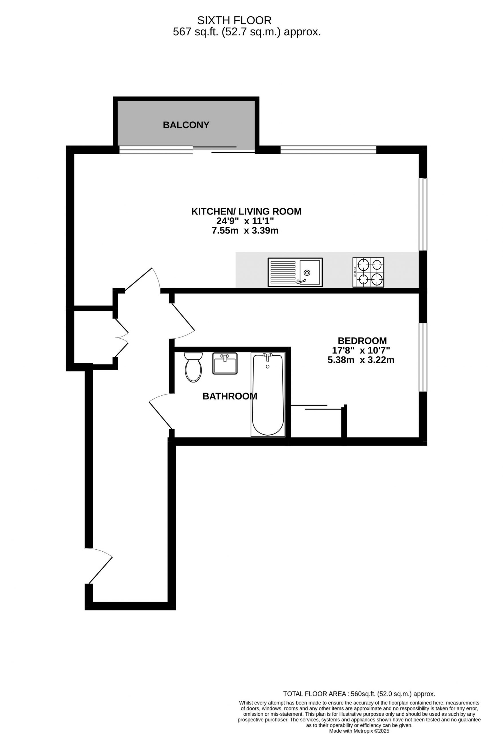 Modern one bedroom apartment on 6th floor in Croydon with open-plan kitchen/living area, balcony, fitted wardrobe, sleek bathroom, and excellent storage. Bright, stylish, and well located.