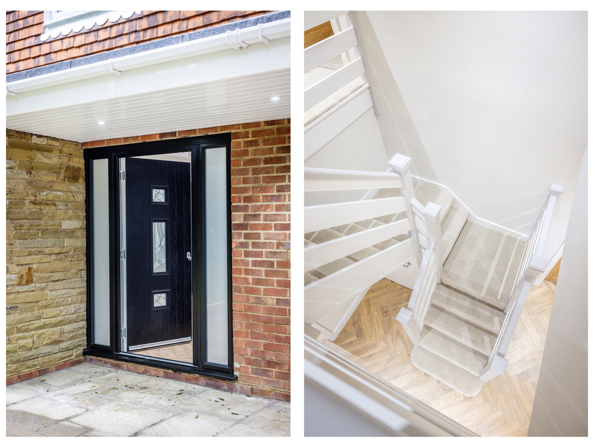 The property is approached via a large driveway with an attractive front garden, leading to the main entrance. Inside, a spacious entrance hall provides useful under stairs storage and a convenient ground floor W/C.
