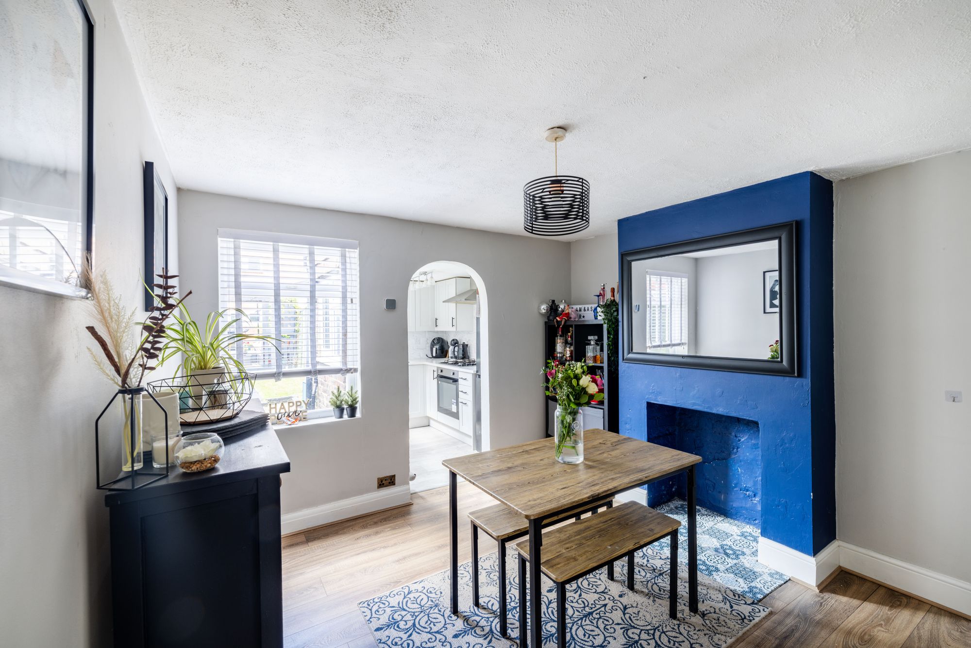 Upon entering the property you are greeted by the sitting room which has a feature fireplace and filters through to the dining room which has a further feature fireplace and access to a large understairs cupboard. The kitchen is kitted out with a mix of wall and floor based units, with an integrated hob/oven, and space for a washing machine and oven.