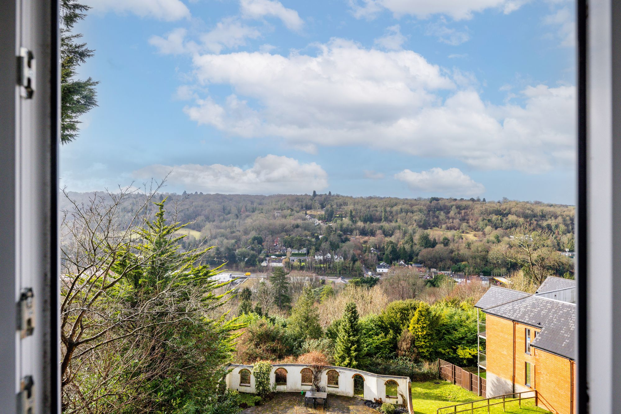 Two generously-sized double bedrooms await, both carpeted, with the main bedroom featuring built-in wardrobes and boasting picturesque views.The bathroom are elegantly finished with floor-to-ceiling tiles, enriching your daily routine.