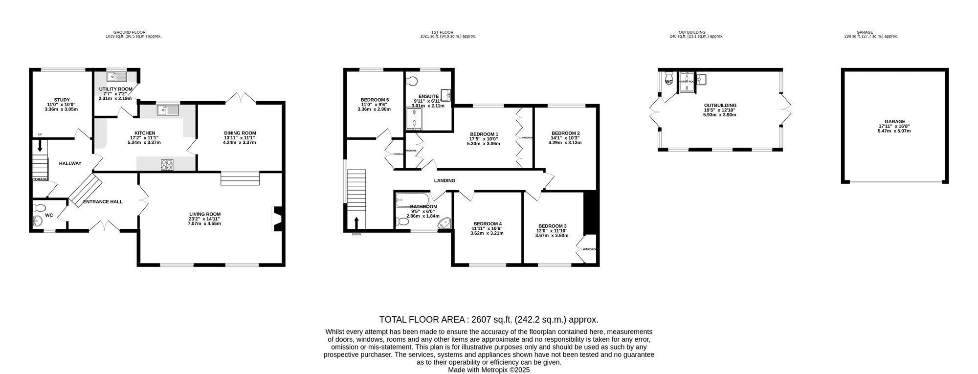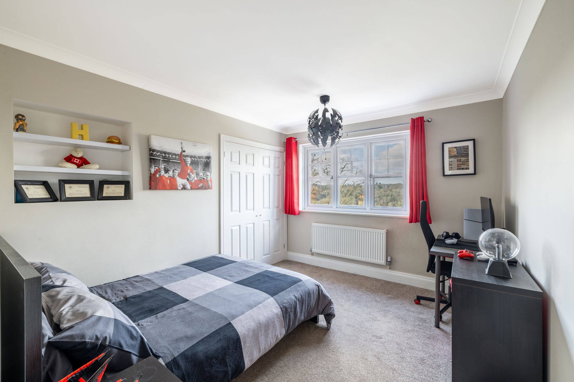 Upstairs, you will find five double bedrooms, two of which feature built-in wardrobes, offering amazing views on both sides no matter what room you’re in. The principal bedroom comes with a modern ensuite bathroom featuring tile flooring to the ceiling, while the family bathroom serves the other four bedrooms.